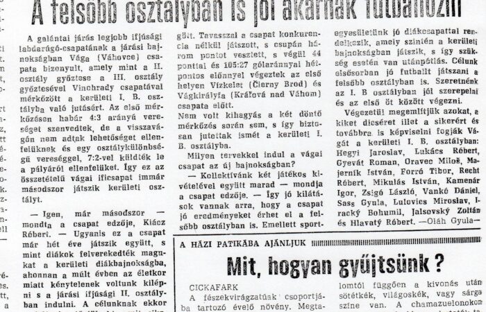 Vága, 1963. évben Hátsó sor, balról jobbra: Takács János, Vadkerti Iván, Forró Ferenc, Bakó Sándor, Patkoló Ernő, Mahely István, Mikula János, Boledovics János, Renács József, Vajda Lajos, Gyeváth István. Középső sor, balról jobbra: Józsa Etela, Kiss Katalin, Forró Mária, Andriszák Éva, Szabó Katalin, Puskás Magdaléna, Varga Pál (tanár), ?, Sandula Erzsébet, Adamkó Emília, Andriszák Rozália,...