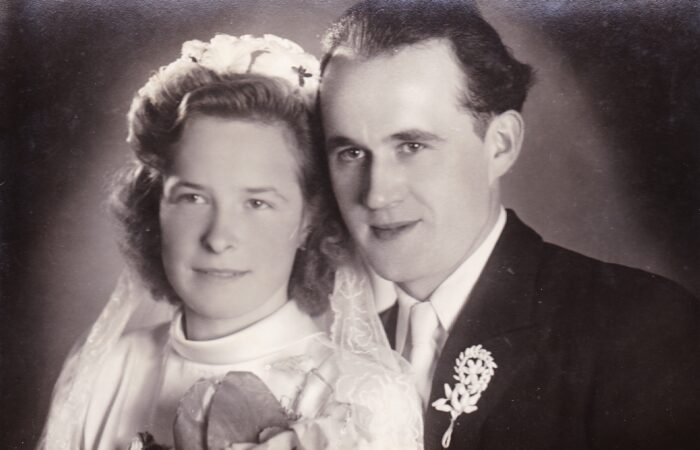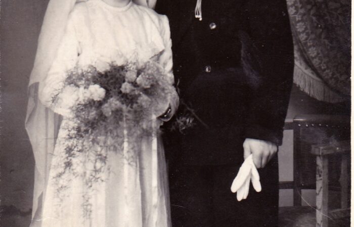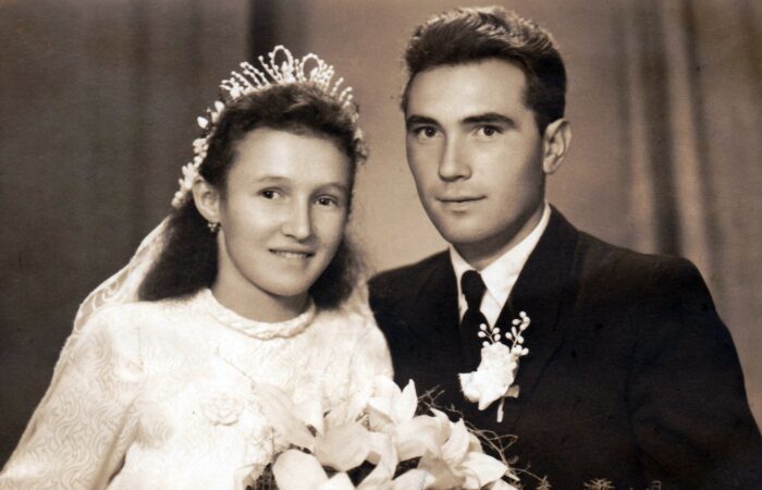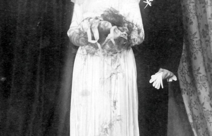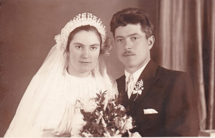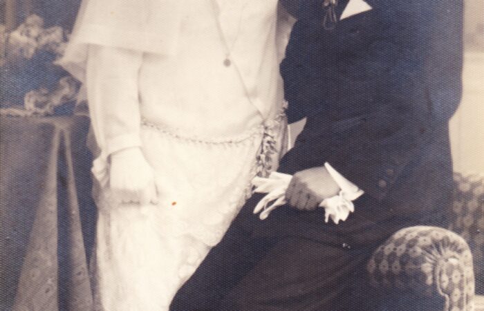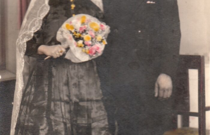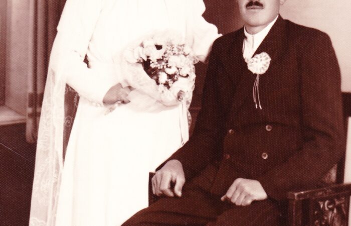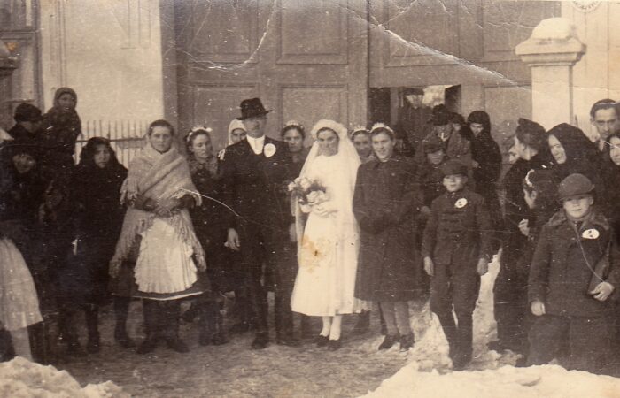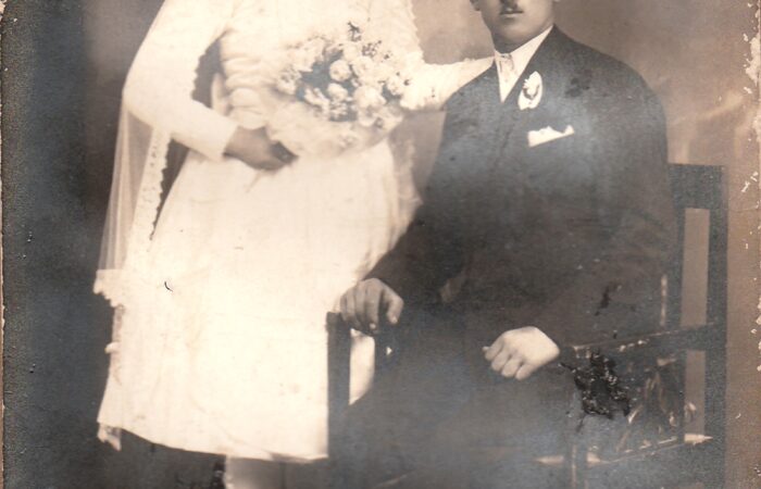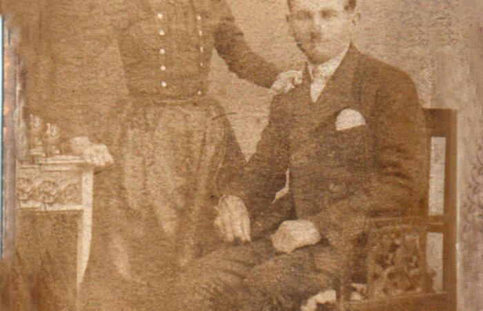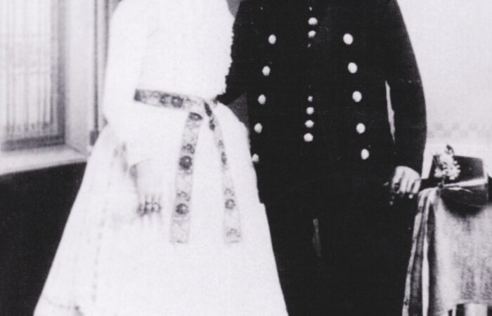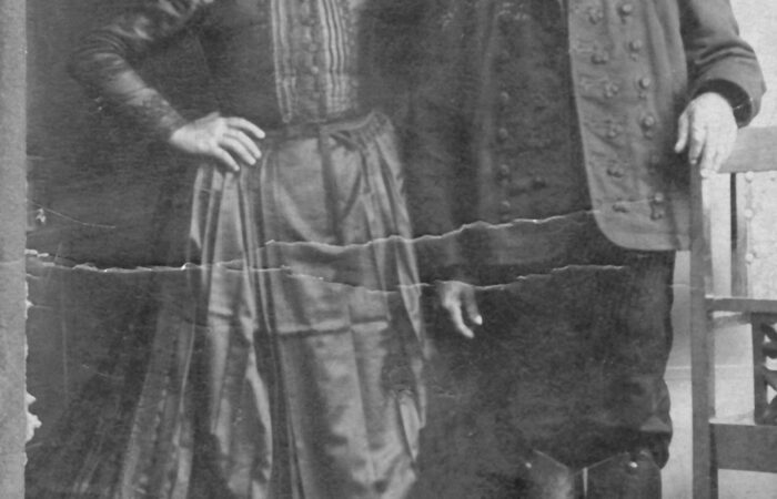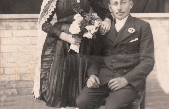 Kosdi Gergely (1875) és Gáspár Lídia (1881), esküvőjük időpontja: 1899. A fotó 1910 után kellett készüljön, mert Wojtowicz Richárd 1910-ben nyitott fényképészeti műtermet Komáromban. Letelepedése után néhány éven belül a város legismertebb, legtöbb megrendelőt vonzó fényképésze lett. A két világháború közötti időszakban is a város vezető mestere maradt. (Érték a fotóban, Országos fotótörténeti konferencia előadásainak anyaga, Tata, 1993. szeptember...