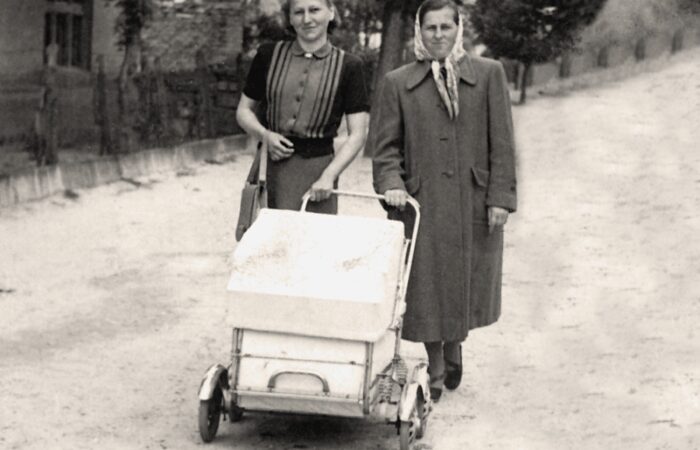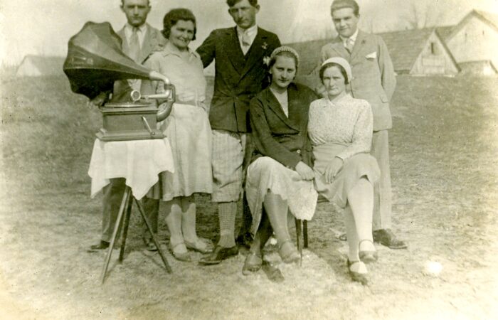 A képen Gunics János a Duna Filmszínház tulajdonosa (Gunicsné Kovács Lina fia, későbbi Palkovicsné), Manci néni, barátnője, Sabla Tyatya, Muca néni, Török Pista bácsi és a gramofon, a Markó-háznál. A gramofon a 19. század végén feltalált hanglejátszó készülék, amely elsőként volt alkalmas nagyüzemi módon gyártott műsoros zeneanyagok, a gramofonlemezek lejátszására. Évtizedekkel a rádiókorszak előtt sokak számára...