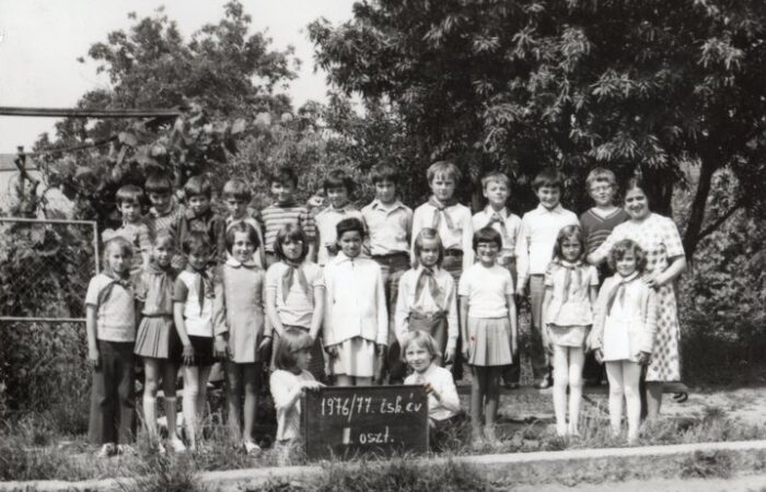 Vága, 1962. esztendőben Hátsó sor, balról jobbra: Dudás István, Lukács Sándor, Zsigó Péter, Czakó Sándor, Kiácz György, Józsa Vilmos, Forró Róbert, Kiácz Róbert, Marafkó János, Gyeváth Tamás, Puskás László, Szabó László, Práger Vilmos, Kozmér László, Simkó Milán, Bakó József. Középső sor, balról jobbra: Práger Anna, Jalsovszky Magdolna, Jalsovszky Ágota, Adamkó Teréz, Forró Rozália, Majerník Anasztázia,...