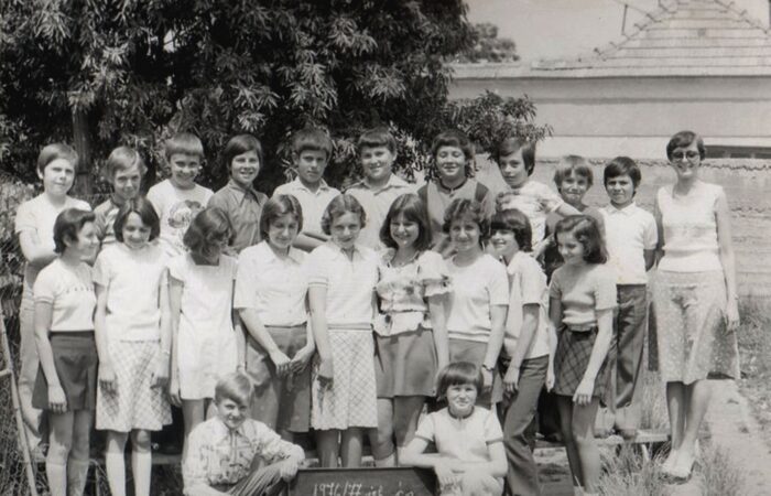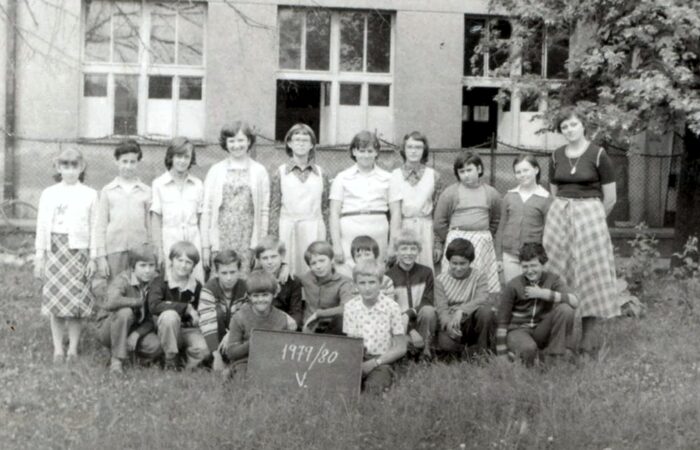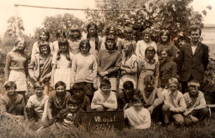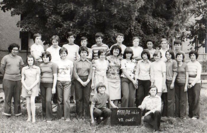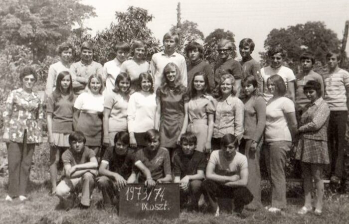Vága, 1980. esztendőben Hátsó sor, balról jobbra: Bakó Mária, Szabó Andrea, Hulák Andrea, Iván Magdolna, Karácsony Eleonóra, Jalsovszky Enikő, Takács Teréz, Forró Bea, Kamenár Judit, Kotrba Mária, Forró Gabriella, Lakatos Emília, Cseleda Iveta. Középső sor, balról jobbra: Forró Marián, Forró József, Karácsony István, Zsigó Tibor, Gyeváth Róbert, Jalsovszky Róbert, Hulák Péter, Kotrba László, Zsigó József,...
