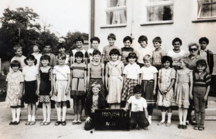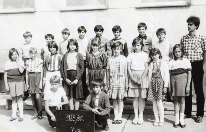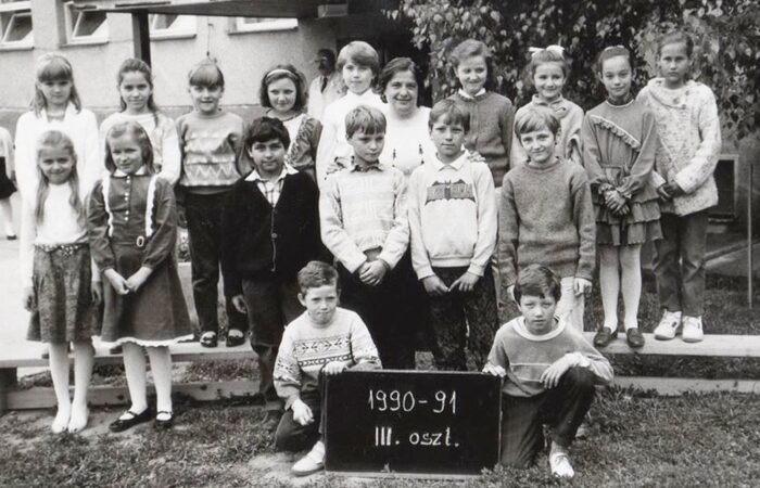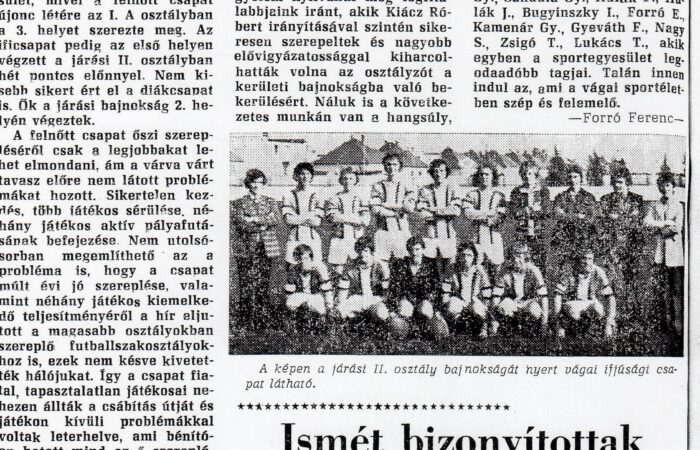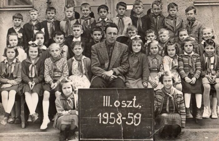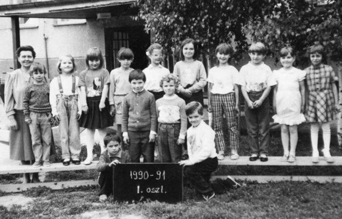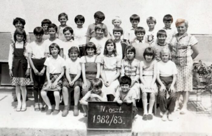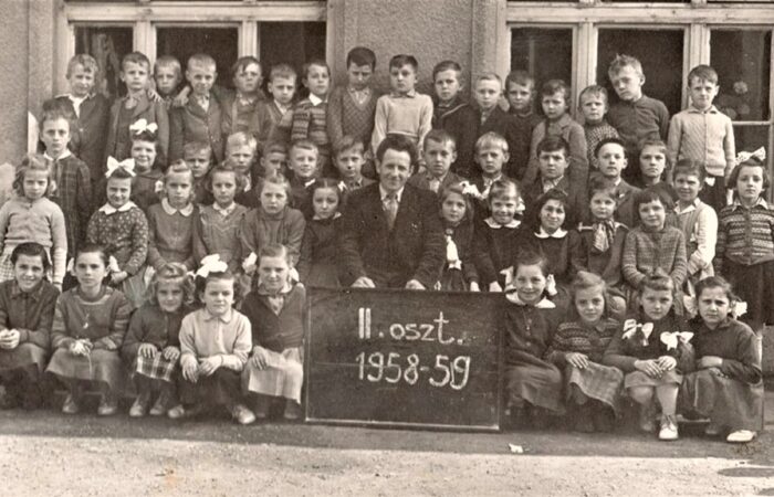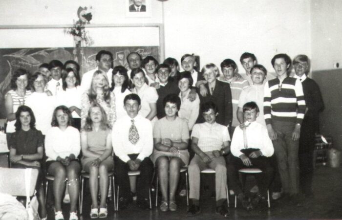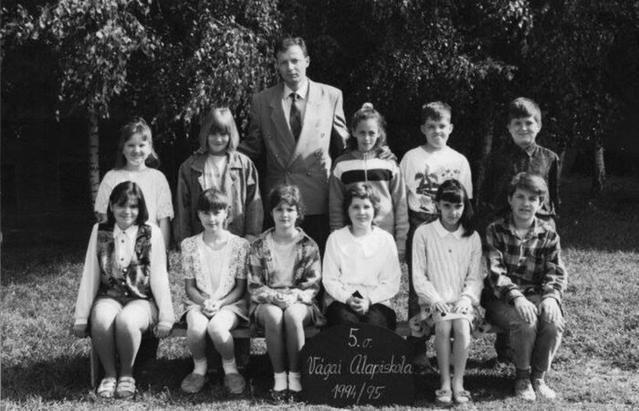 Vága, 1973. év nyarán Állnak, balról jobbra: Práger Jolán, Szabó Erzsébet, Mészáros Imre, Gyeváth Mária, Gyöpös Zoltán (tanár), Zsigó Éva, Somogyi Antal (iskolaigazgató), Forró Mária, Miklós György (matektanár), Jalsovszky Magda, Bakó Tibor, Farkas Miklós, Szabó Imre, Puskás György, Simkó Péter, Takács Ernő, Puskás Sándor, Szlízs Róbert, Oberman Ferenc, Forró Sándor, Török László. Ülnek, balról jobbra:...