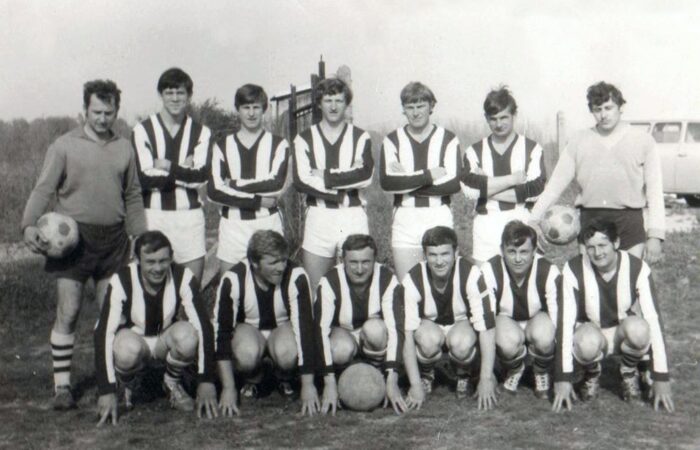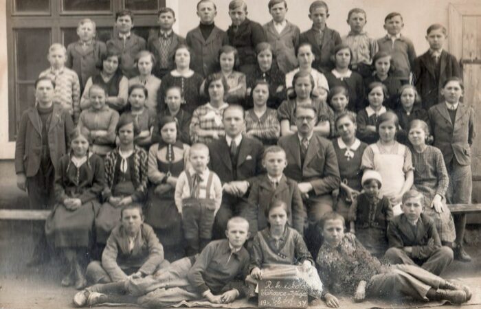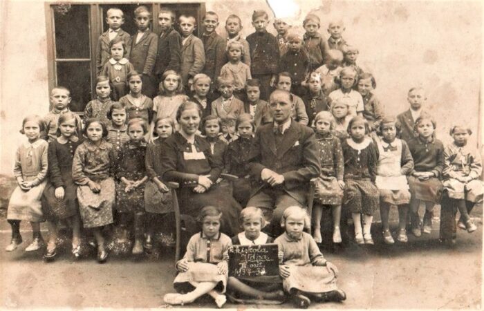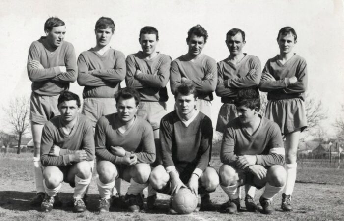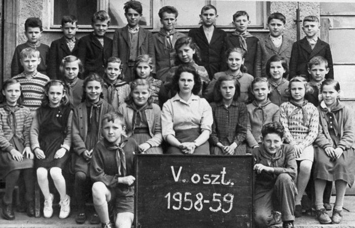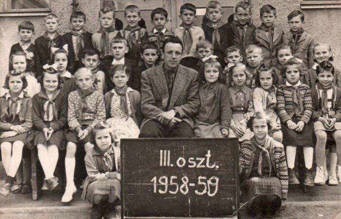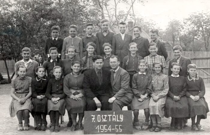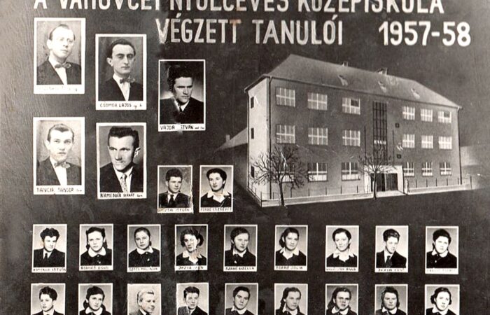 Vága, 1955. évben Hátsó sor, balról jobbra: Hlavaty Ferenc, Józsa László, Hulák Gyula, Józsa Tibor, Gyeváth László, Mackó Gyula, Puskás László, Forró Ferenc. Előttük állnak, balról jobbra: Takács Ödön, Szlízs Erzsébet, Kertész Sarolta, Kamenár Irén, Gyeváth Zsuzsanna, Takács Margit, Szlízs Anna, Zelinka Margit, Lukács Ilona, Forró Erzsébet, Boledovics Ernő. Lányok ülnek, balról jobbra: Fördős Margit,...