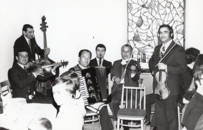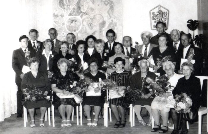 Vága, 1980-as években Az 1929-ben születtek találkozója a Helyi Nemzeti Bizottság épülete eskető termében. Állnak balról jobbra: Hlavaty Jenő, Forró Dániel, Józsa Erzsébet (született Kamenár), Majerník Gyula, Minárik Etel, Mészáros Frigyes, Zsigó Sarolta, Vedrődi Mária, Forró Margit (Magyerka), Forró Tibor, Kubica Rozália (Zsigó), Szabó Dániel, Vedrődi Tivadar, Szabó István, Pazsma Borbála, Horváth László, Zsákovics Ferenc....