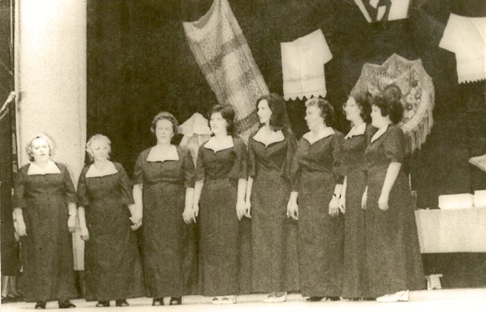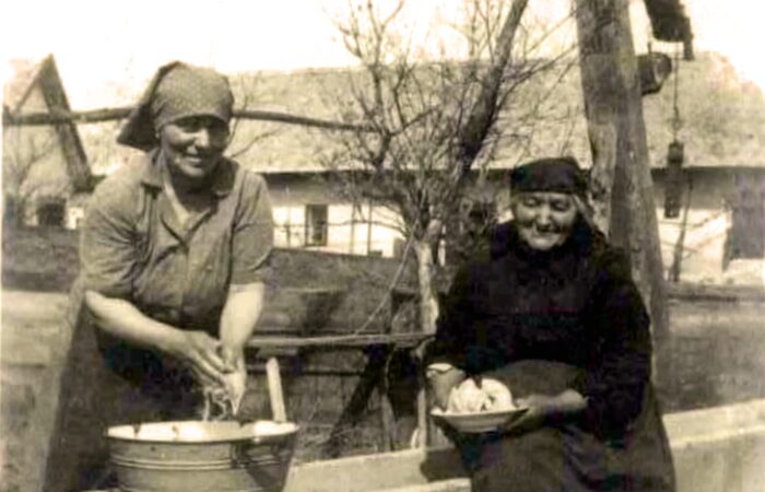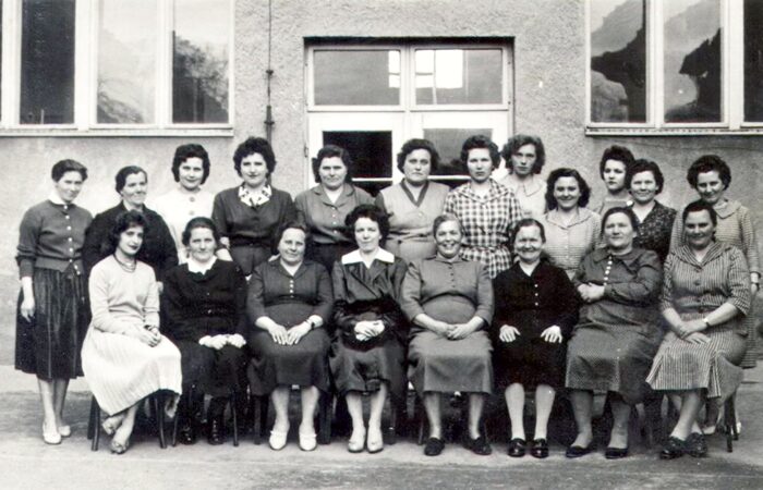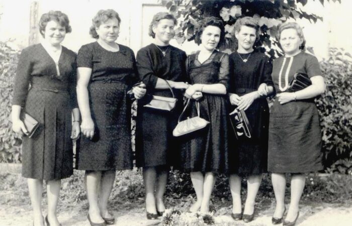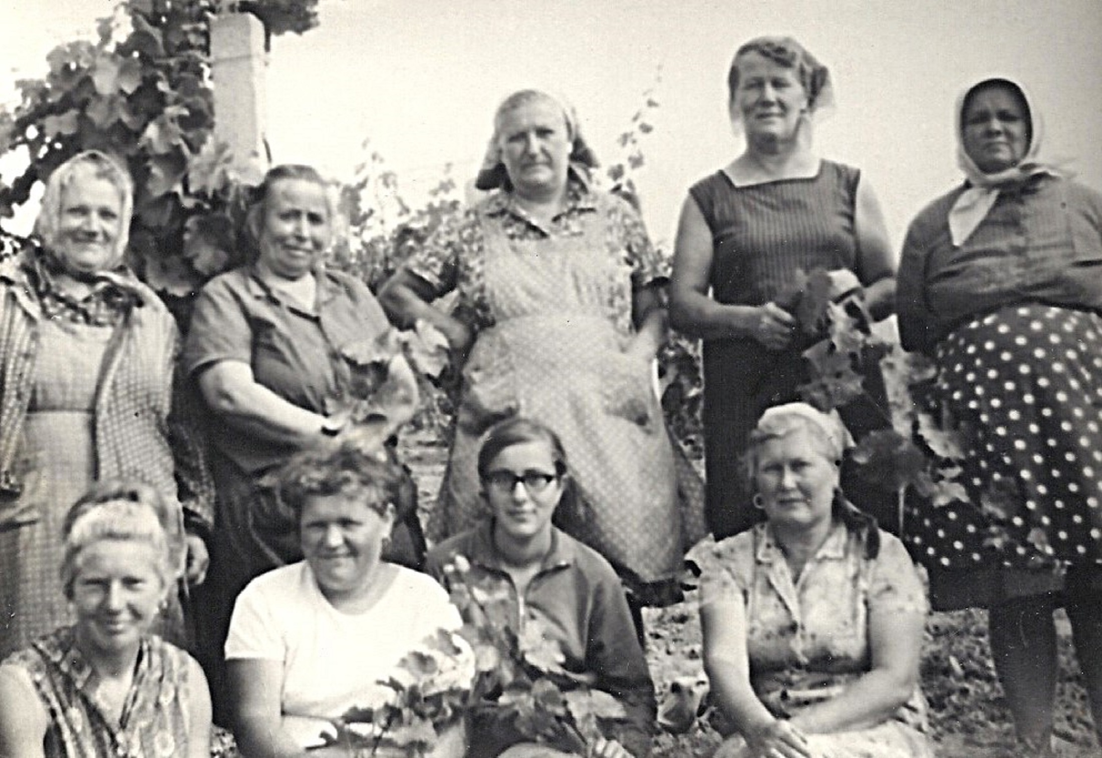 Vága, az 1950-es évek végén Állnak, balról jobbra: Bakó Genovéva (született: Zsigó), Nagy Rozália (született: Kiácz), Csomor Adél (született: Forró), Szlízs Ilona (született: Tóth), Forró Izabella, Bakó Margit (született: Takács), Hegyi Gizella (született: Magyerka), Józsa Rozália (született: Forró), Forró Margit, Somogyi Ilona (született: Kender), Takács Jolán, Kotrba Mária (született: Major). Ülnek, balról jobbra: Kovács Márta...