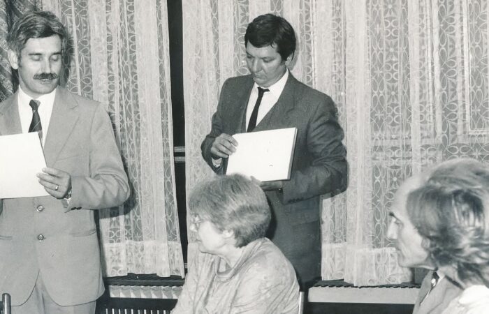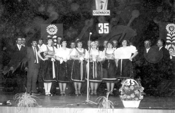Fent a rajvezetők: Nagy Judit, Kolocsics Júlia, Németh Gyula, Szabó Katalin, Szabó Lídia. Lenti sor: Megály Antal, Riedlmayer Erzsébet, Mező Katalin, Komjáthy Edit, Bencsik Julianna, Lakatos Éva, Vida Aranka, Nagy Katalin (N. Elemér), Molnár Éva, Szép Irén, Nagy Mária, Molnár Terézia, Koller László, Polyák Gyula. Középső sor: Szabó Zoltán, Vasmera Katalin, Fehérváry Etelka, Bognár Zoltán,...