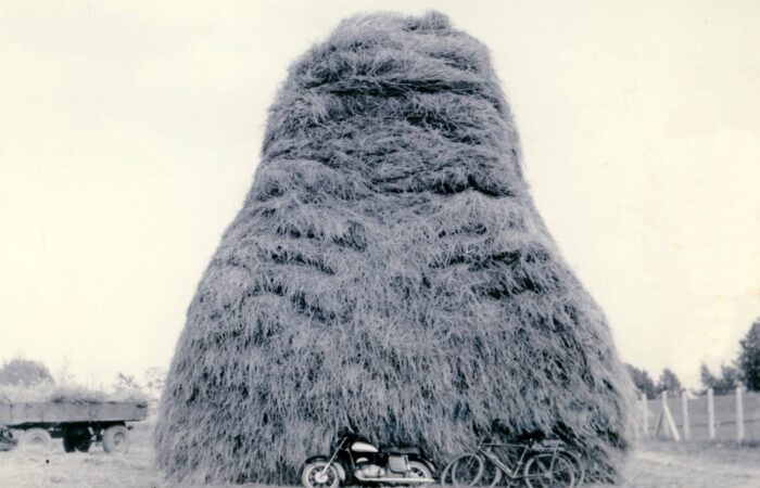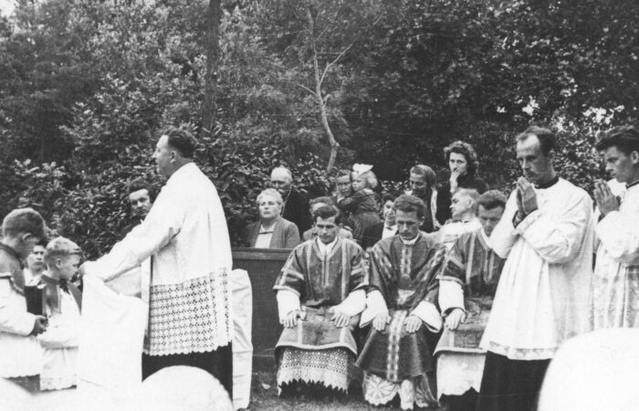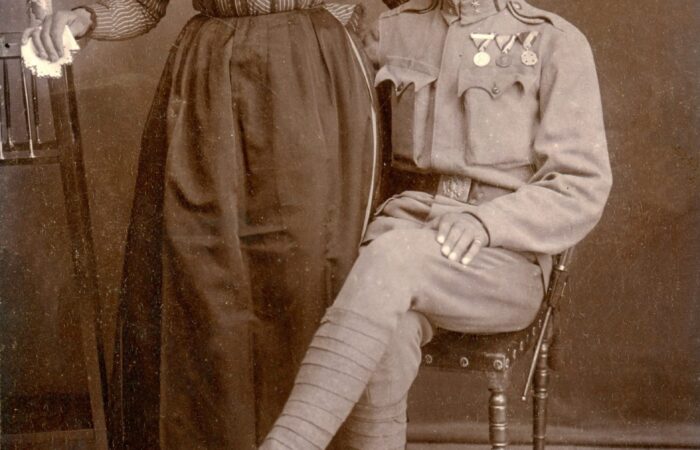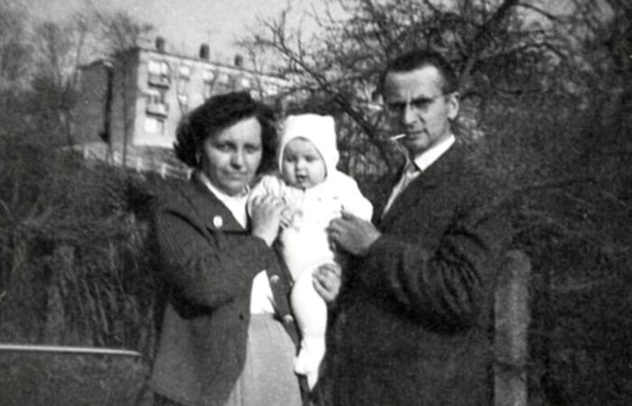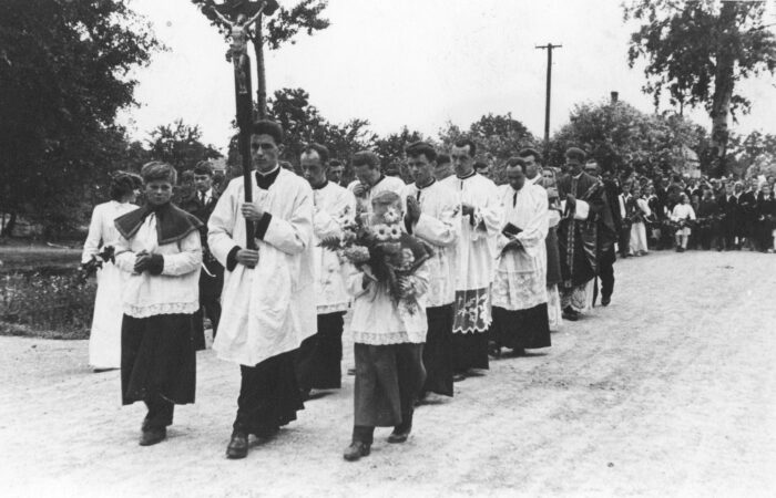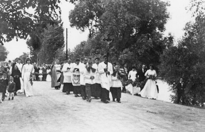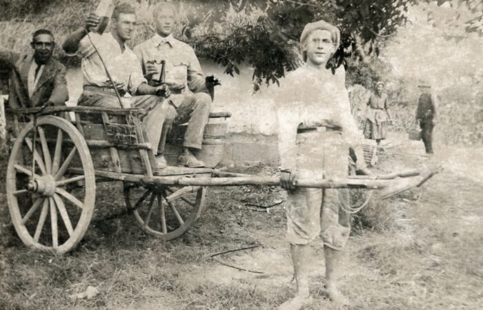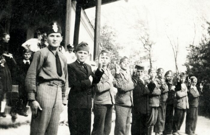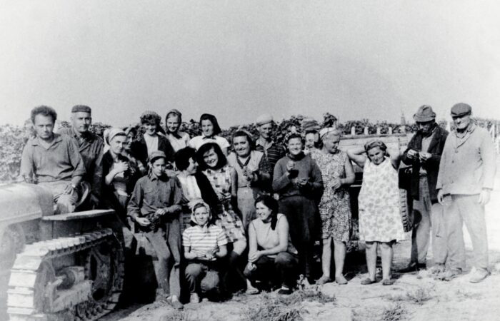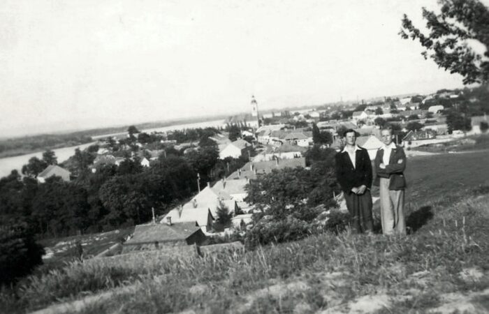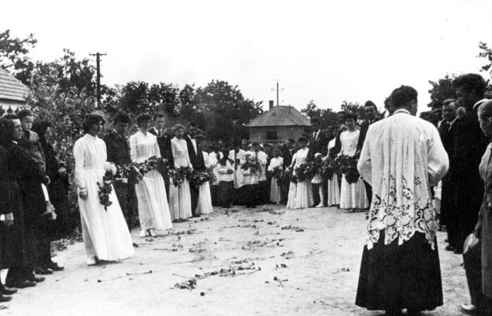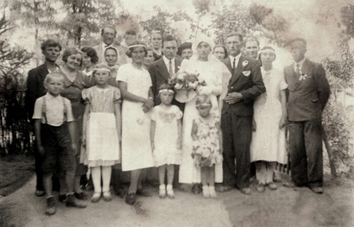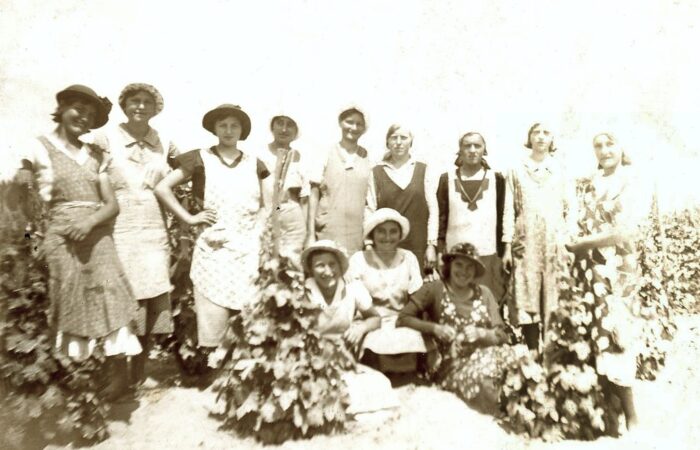 Az öreg Psenák ház a Tulipán utcában, 131-es házszám alatt. Balról Mihalik Margit, Józsikával, aki a háború alatt meghalt torokgyíkban. Psenák Mária, gyermekével Józsikával, XX, XX, Mráz Ilcsi néni gyermekével, Bözsikével, Muca néni varrónő, Sabla József (Tyatya), XX, Mráz Pistike, Margit Ilonka, Margitné Júlia – Julcsa néni, XX, 1933.