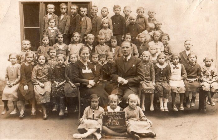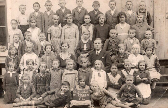 Vága, 1938. esztendőben A Római Katholikus Iskola 44 tanulója meg Kneif Piroska (osztályfőnök) és Kneif Tibor (iskolaigazgató). A következő nevezetű tanulók láthatók a képen: Kamenár Julianna, Lukács Margit, Józsa Piroska, Takács Adél, Szabó Pál, Kamenár Erzsébet, Forró Julianna, Jalsovszky Teréz, Gyeváth Teréz, Horváth Izabella, Rampák Júlia, Knézel Rozália, Czakó Mária, Zsigó Erzsébet, Forró Otília, Zsigó...