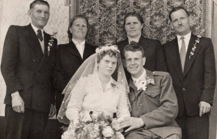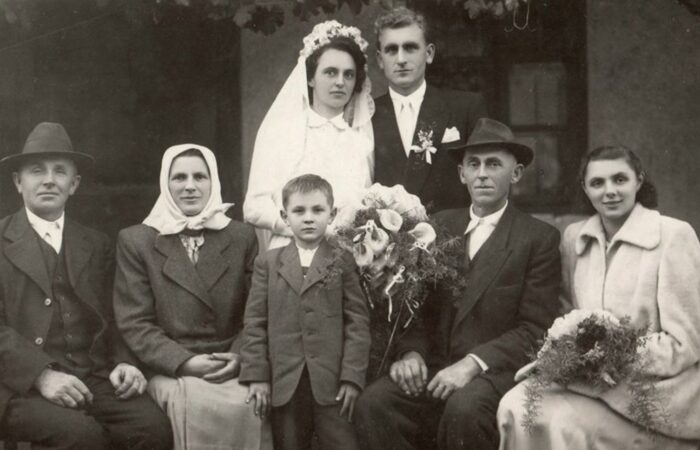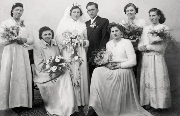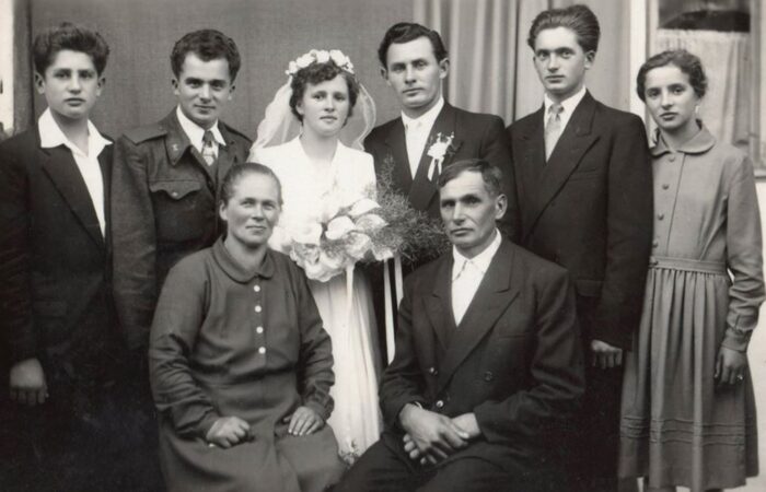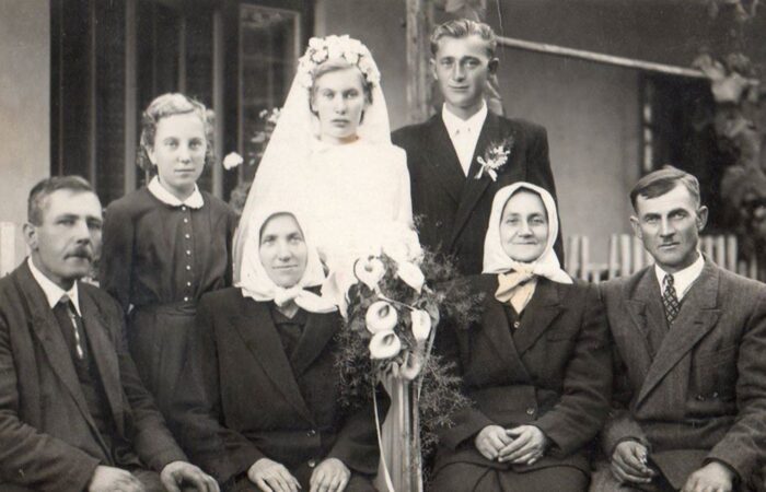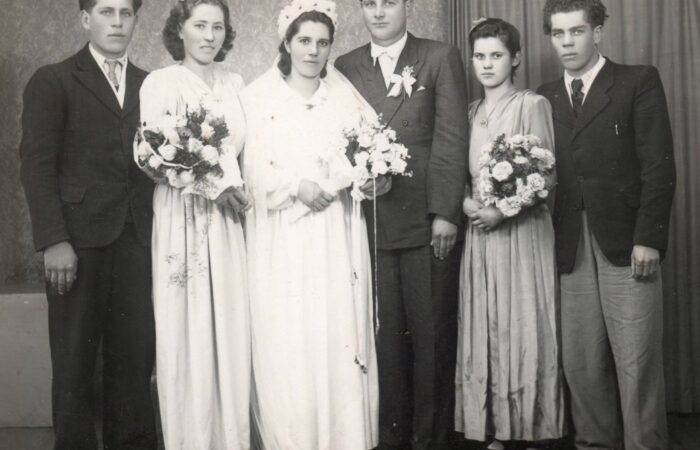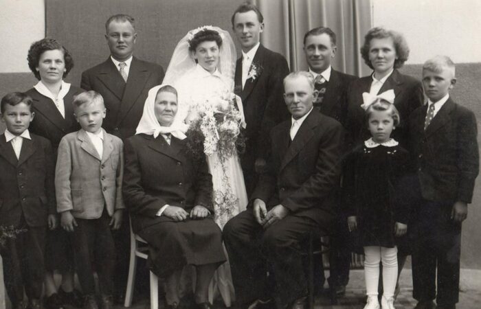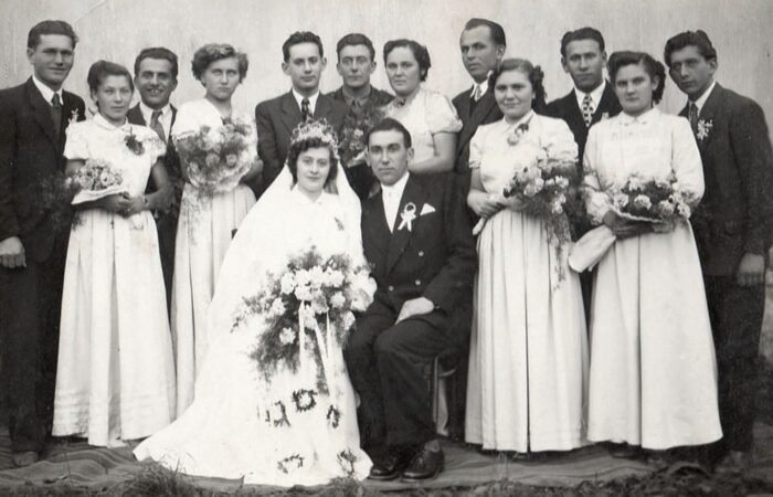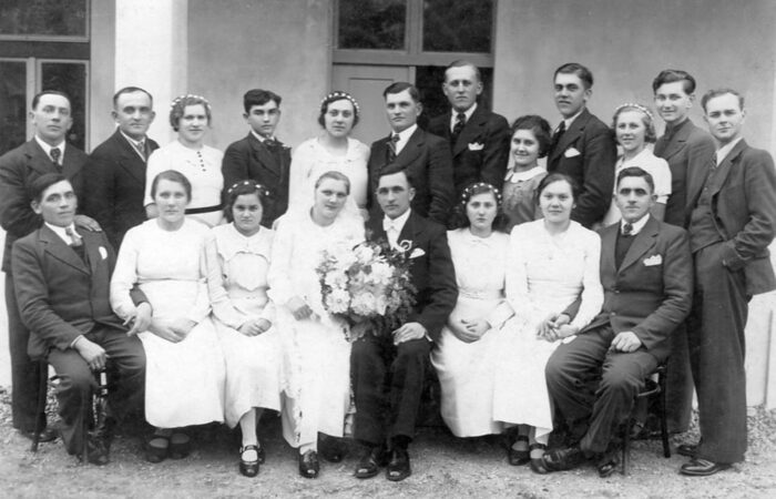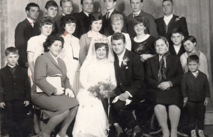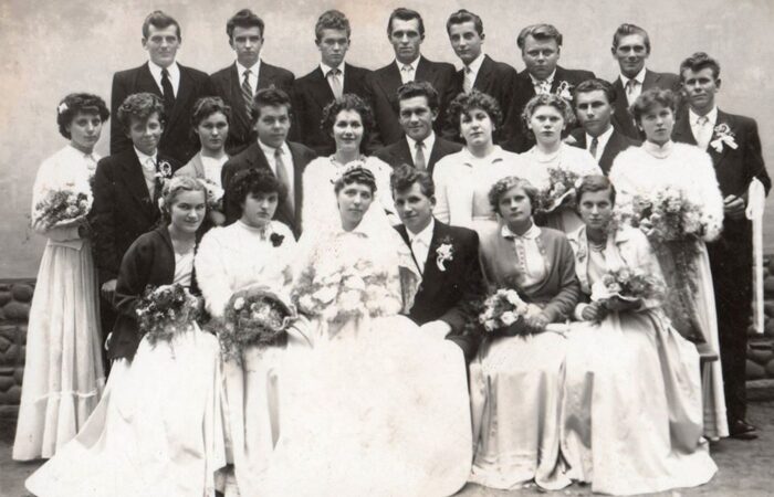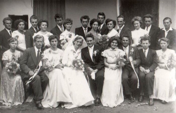 Vága, 1958. szeptember 28. Hátsó sor, balról jobbra: Zsigó Tibor, Forró Klára, Kiácz Róbert, Forró Ági, Forró Sándor, Kamenár József, Fördős József, Szűcs Borbála, Forró István, Nagy Júlia, Józsa László, Nagy Janka, Súrik Stefan, Fördős Ferenc. Első sor, balról jobbra: Kamenár Etela, Kamenár László (vőfély), Kiss Ilona, Forró Rozália-Mónika (menyasszony), Józsa András (vőlegény), Bitter Valéria,...