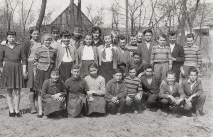 Vága, 1950-es években Hátsó sor, balról jobbra: Zsigó Magdolna, Oberman Edit, Kiss Ibolya (Karácsonyné), Farkas Vera, Szabó Irén, Kiácz István, Mahely László. Középső sor, balról jobbra: Zsigó Erzsébet, Kamenár Katalin, Majerník Mária, Majerník Margit, Práger Tibor, Czakó Gábor, Vedrődi Antal, Takács Zoltán, Kotroba László, Kubányi István, Zsigó Jenő. Első sor, balról jobbra: Éliás Erzsébet, Dudás...