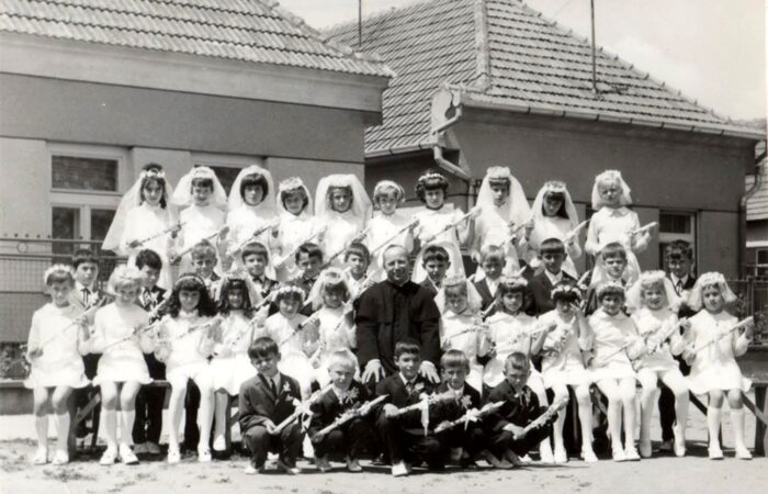 Vága, 1970-es évek első felében Hátsó sor, balról jobbra: Bakó István, Karácsony Tibor, ?, ?, Forró Zoltán, Takács Róbert, ?, ?, Farkas Marian, Polakovics János. Előttük álló lányok: Lelovics Ildikó (balról), ?, Forró Lídia, Krutek Helena, ?, Kamenár Ivett, ?, Zsigó Vera, Bakó Márta, Puskás ?. Előttük ülő lányok, balról jobbra: ?, Hulák Teréz, Fördős...