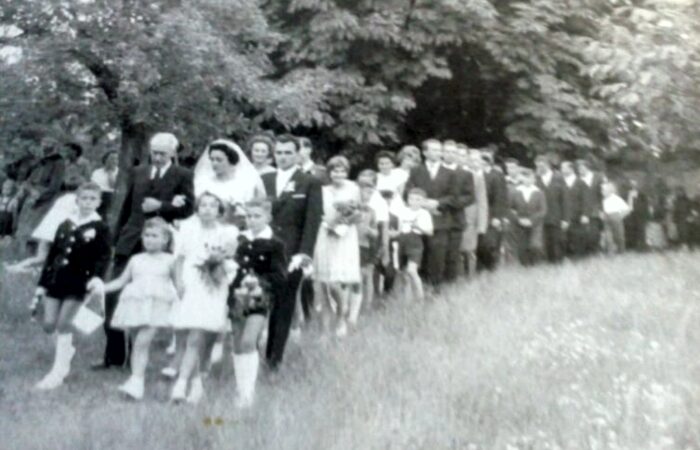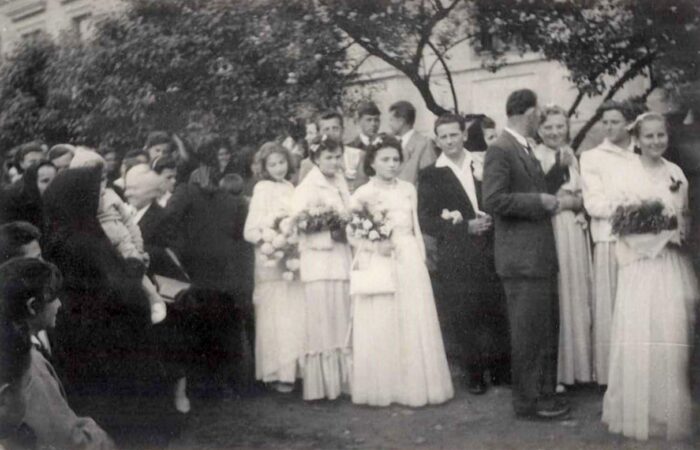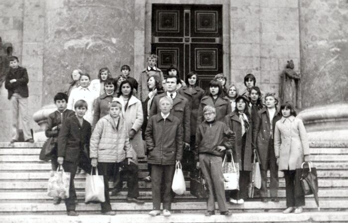 Esztergom, 1970-es évek közepén A Bazilika lépcsőjén állnak, balról jobbra: Magyerka Ferenc, Farkas Imre, Bakó Mária, Török János, Tóth Mária, Szlízs Lídia, Forró Éva, Takács Dénes, Éliás Erika, Szlízs Katalin, Szabó Jaroslav, Forró Lubomír, Forró Ilona, Takács Miroslav, Gyöpös Zoltán (tanár), Ladovics Mária, Józsa Éva, Forró István, Simkó Erzsébet, Takács Éva, Práger Katalin, Kozmér Edit,...