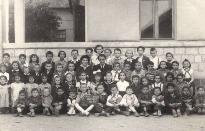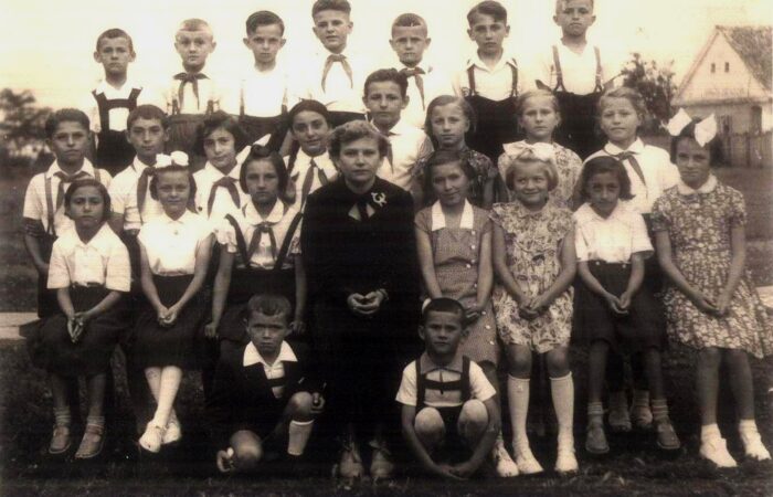 Évvégi iskolai csoportkép Nemesradnóton 1957-ben. Tanítónő: Komlós Manyi. Hencz László, Pósa Géza, Bodon Gyula, Bodon Jenő, Miko Imre, Tóth Gyula, Pósa Árpád, Pósa Tibor, Pósa László, Bartók Klára, Balog Éva, Zibrin Géza, Pósa Margit, Galos Erzsébet, Lukács Jolán, Miko Katalin, Balog Júlia, Ferencz Edit, Pósa Aranka, Túróczi Magda, Simon Rozália, Balog Gizella, Pósa Gyula, Simon...