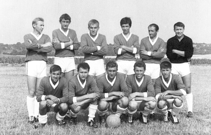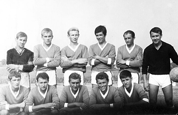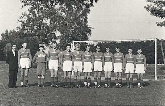 Vága, 1960-as évek közepén Állnak balról jobbra: Lulovics Zoltán (középpályás), Hulák Jenő (csatár), Forró László (hátvéd), Zsigó József (csatár), Zsigó Lajos (csatár), Bakó Jenő (középpályás, csatár, de kapus is), Zsigó József (hátvéd). Guggolnak balról jobbra: Recht Ferenc (középpályás), Hulák József (csatár), Karácsony István (kapus), Mikula József (hátvéd), Nagy Sándor (középpályás és hátvéd).