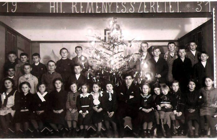 A rétei református elemi népiskola karácsonyi fotója Felső sor balról jobbra: Szabó Gyula, Szabó László, Nemes Dénes, Huszár Imre, Gergely Péter, Rajczi Imre, Dóka Árpád, Karátsony Dezső Középső sor: Sándor Károly, Rajczi Sándor, Szabó Sándor, Nemes László, Macsizsa Sándor, Szalay Dezső, Huszár József Alsó sor: Szabó Irén, Macsicza Lujza, Mészáros Ilona, Huszár Margit, Dóka Sára,...