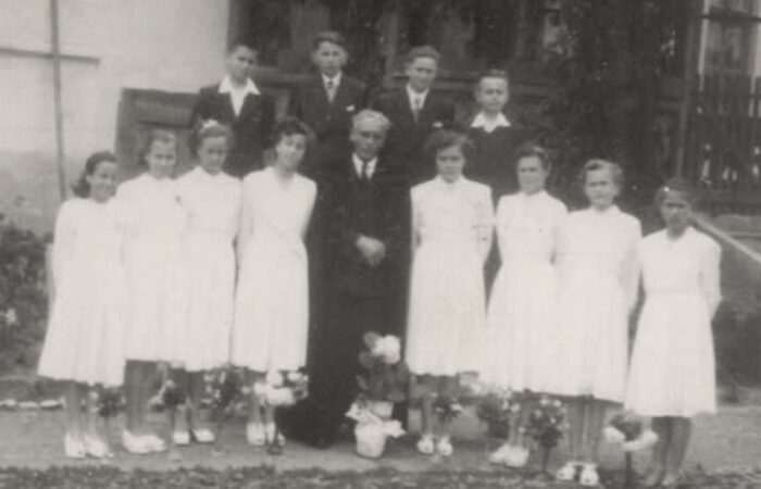 Az 1947-es csehországi deportáláskor Felsőszeliből az egyik vagonba három család került, Deák Alajos, Horváth István és Deák Géza családja. Podbořanyban szálltak ki, ahol a gazdák kiválogatták őket. Deák Géza családja Blšany faluba, németül Flöha-ba került. Mezőgazdasági munkákban vettek részt, a gyerekek cseh iskolába jártak. A komlószedés nagy munka volt, a képen láthatók: Felső sor: 2....