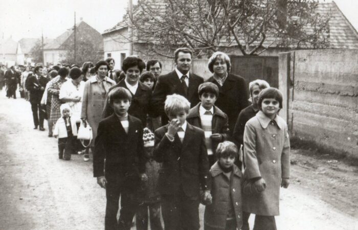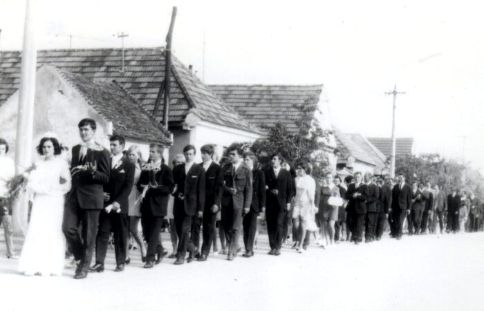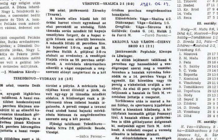 Vága, 1960-es években Hátsó sor, balról jobbra: Forró Dezső, Klaszta Libor, Karácsony ?, Dubnicska István, Takács Róbert, Bakó Róbert, Bakó László, Andriszák Róbert, Silný Maros, Mészáros Frigyes, Horváth György, Forró László, Kamenár Jenő, Kozmér István. Középső sor, balról jobbra: Dudás Emília, Jalsovszky Mária, Kozmér Magda, Jalsovszky Erzsébet, Zelinka Magda, Németh Magda, Takács Erika, Kamenár Eszter,...