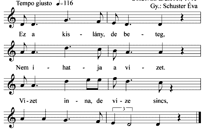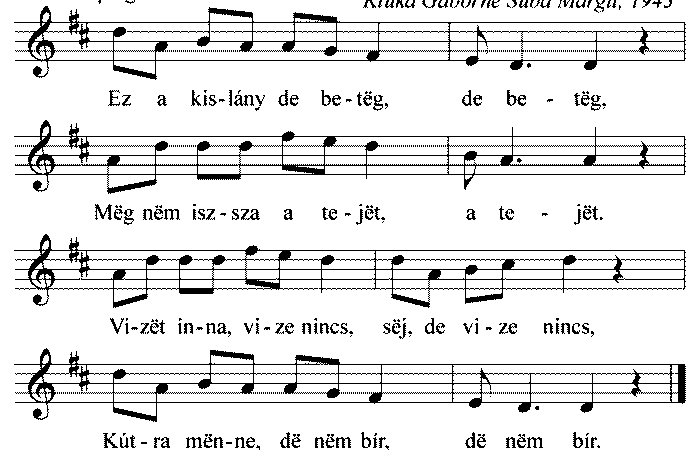 Ez a kislány de betëg, de betëg, Mëg nëm issza a tejët, a tejët. Vizët inna, vize nincs, sëj, de...