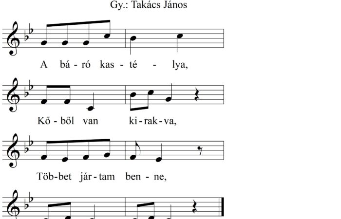 1. A báró kastélya, Kőből van kirakva, Többet jártam benne. Éhen, mint jóllakva. 2. Amerre én járok, Még a fák...