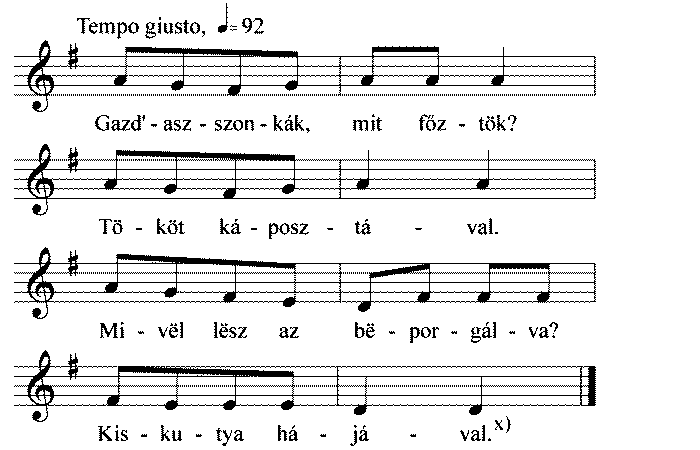 1. Gazdasszonykák mit főztök? Tököt káposztával. Mivel lesz az beporgálva? Kiskutya hájával.