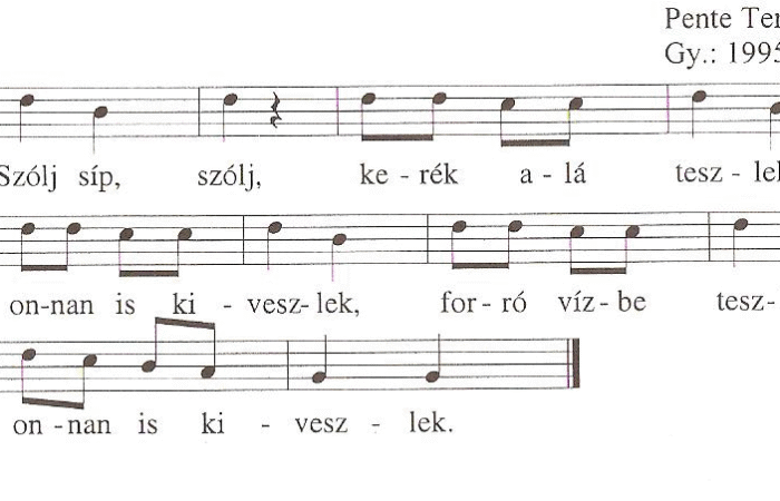 Szólj, síp, szólj, kerék alá teszlek,onnan is kiveszlek, forró vízbe teszlek,onnan is kiveszlek.
