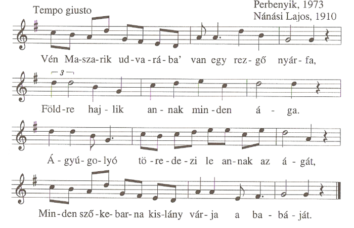 1. Vén Maszarik udvarába van egy rezgő nyárfa,Földre hajlik annak minden ága.Ágyúgolyó töredezi le annak az ágát,Minden szőke barna kislány...