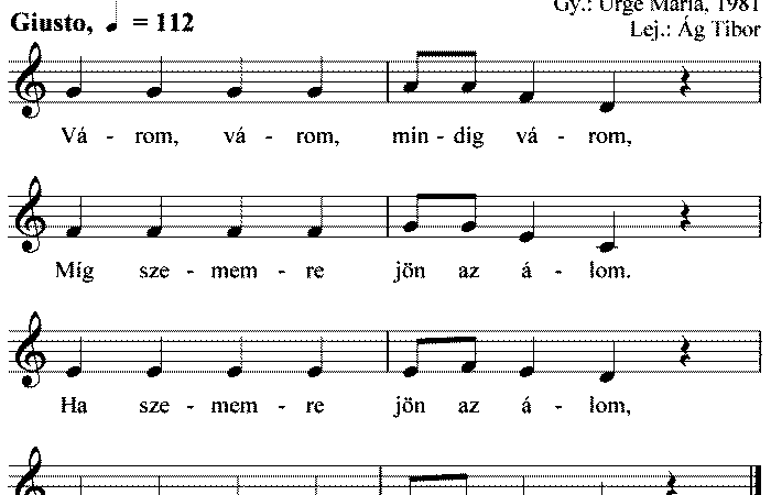 1. Várom, várom, mindig várom, Míg szememre jön az álom. Ha szememre jön az álom, Ajtóm, ablakom bezárom. 2. Szabó...