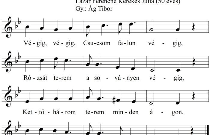 Végig végig Csucsom falun végig (ének, Felnőttek népdalai, lírai dal)