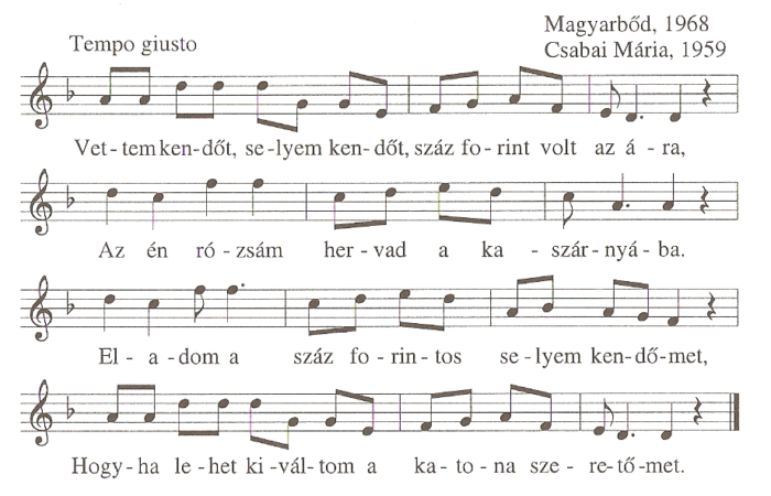 Vettem kendőt selyemkendőt száz forint volt az ára (ének, alkalomhoz nem kötött dal, Felnőttek népdalai)