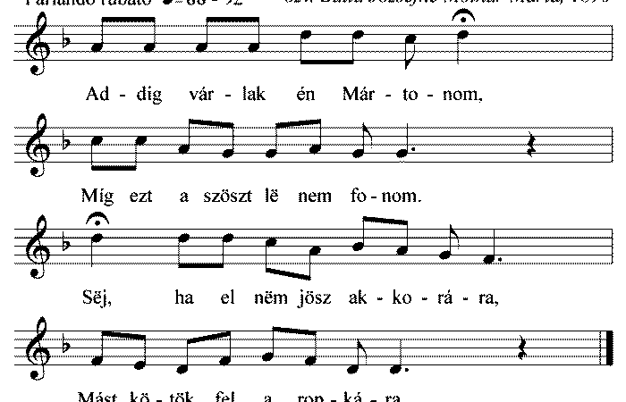Addig várlak én Mártonom, Míg ezt a szöszt lë nem fonom. Sëj, ha el nëm jösz akkorára, Mást kötök fel...