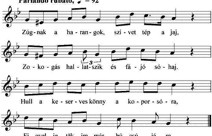 1. Zúgnak a harangok, szivet tép a jaj, Zokogás hallatszik és fájó sóhaj. Hull a keserves könny a koporsóra, Figyeljetëk...