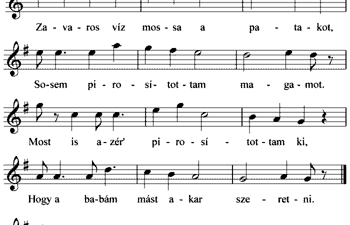 1. Zavaros víz mossa a patakot, Sosem pirosítottam magamot. Most is azér’ pirosítottam ki, Hogy a babám mást akar szeretni....