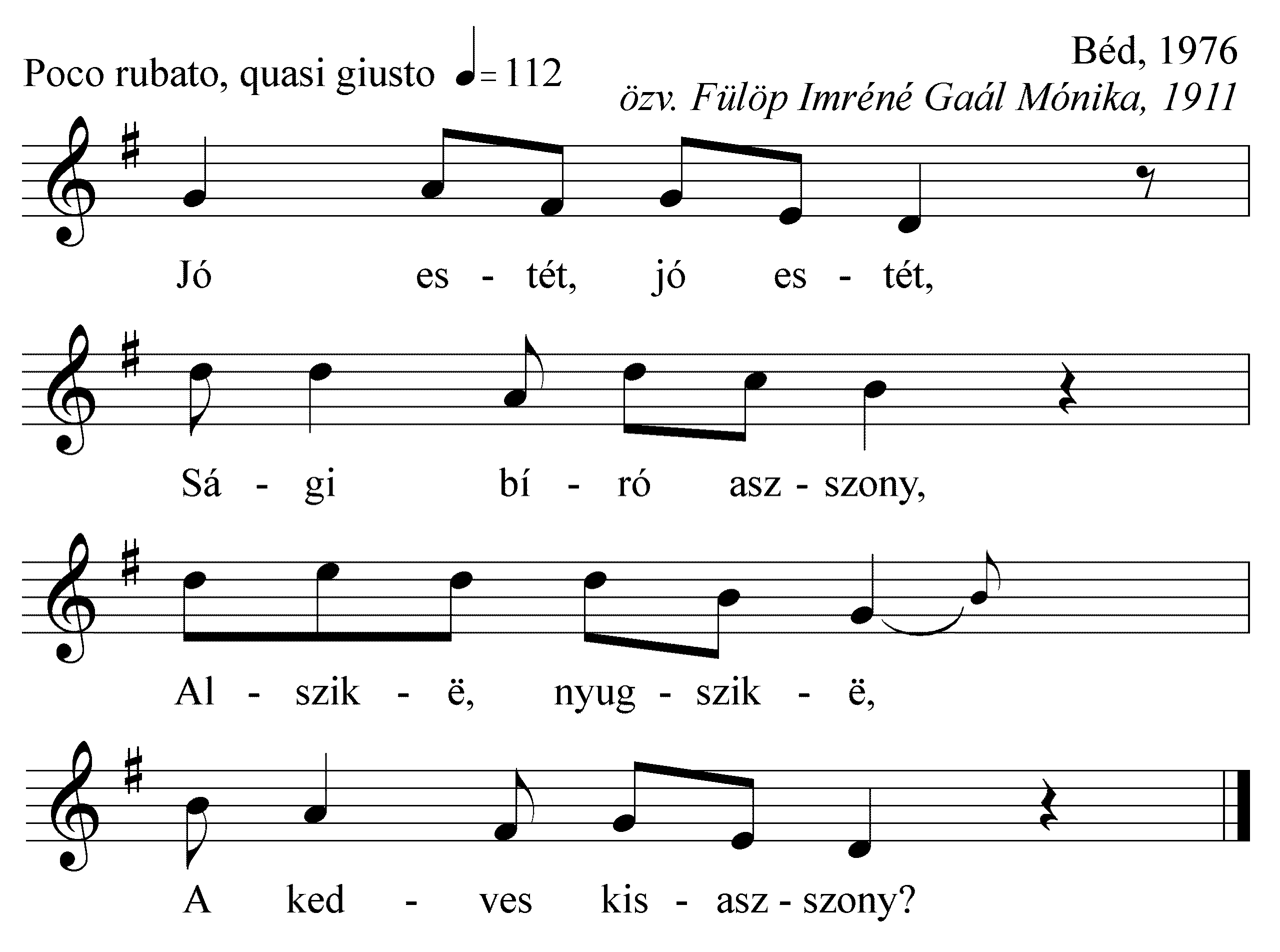 – Jó estét, jó estét, Sági bíró asszony, Alszik-ë, nyugszik-ë...