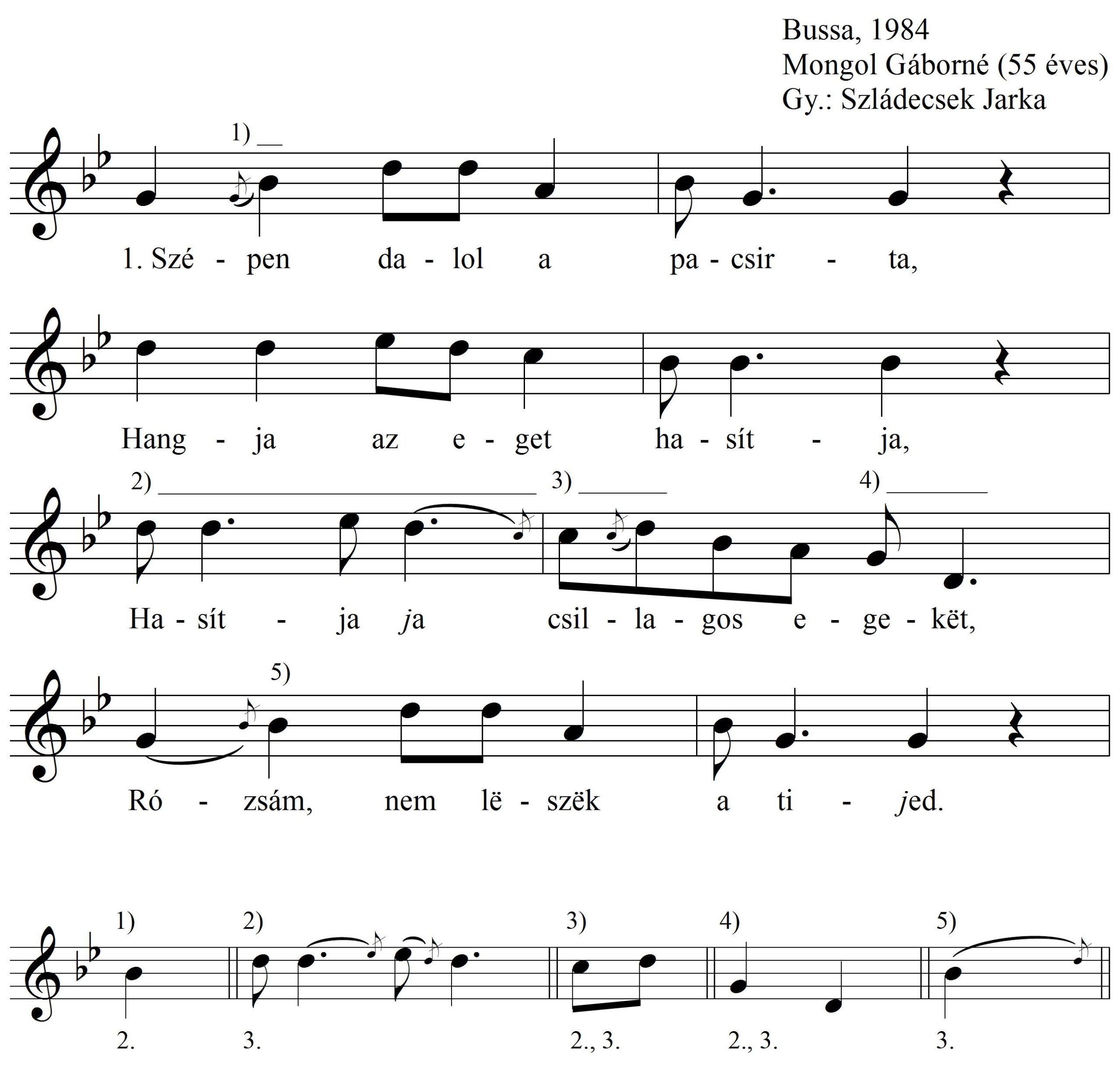 1. Szépen dalol a pacsirta, Hangja az eget hasítja, Hasítja ja...