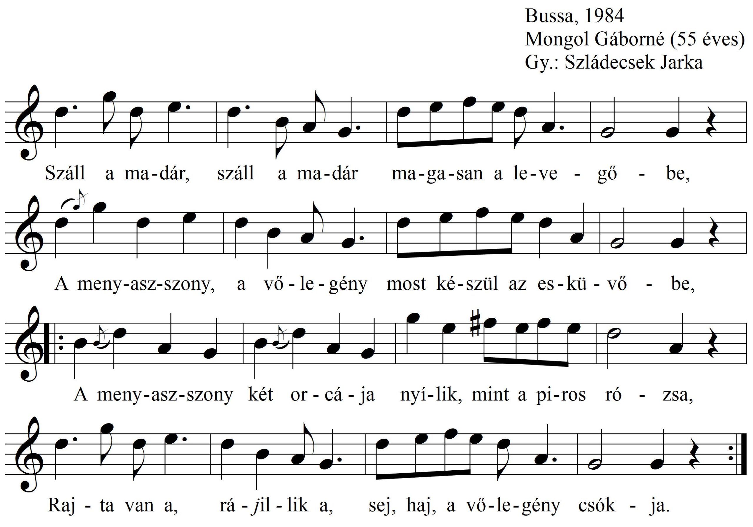 Száll a madár száll a madár (ének, Felnőttek népdalai, lakodalmas nóta)