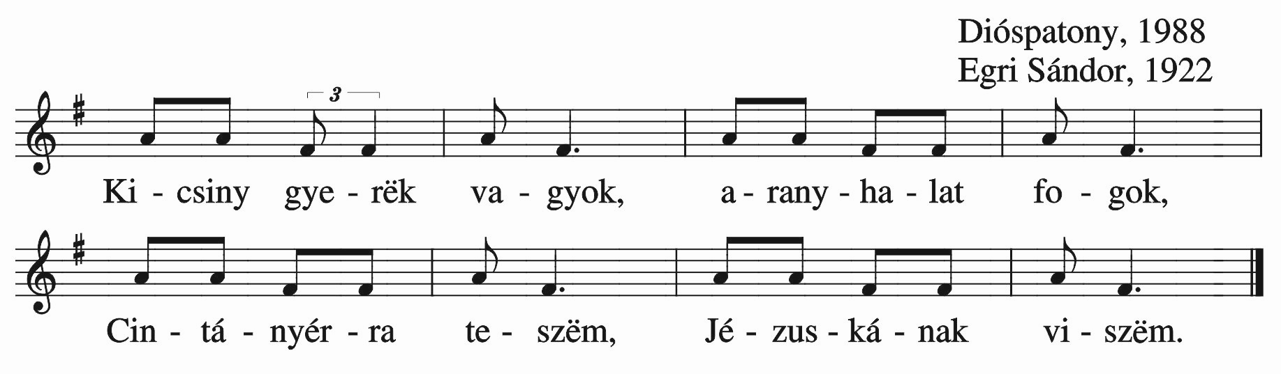 Kicsiny gyerëk vagyok, Aranyhalat fogok, Cintányérra teszëm, Jézuskának viszëm.