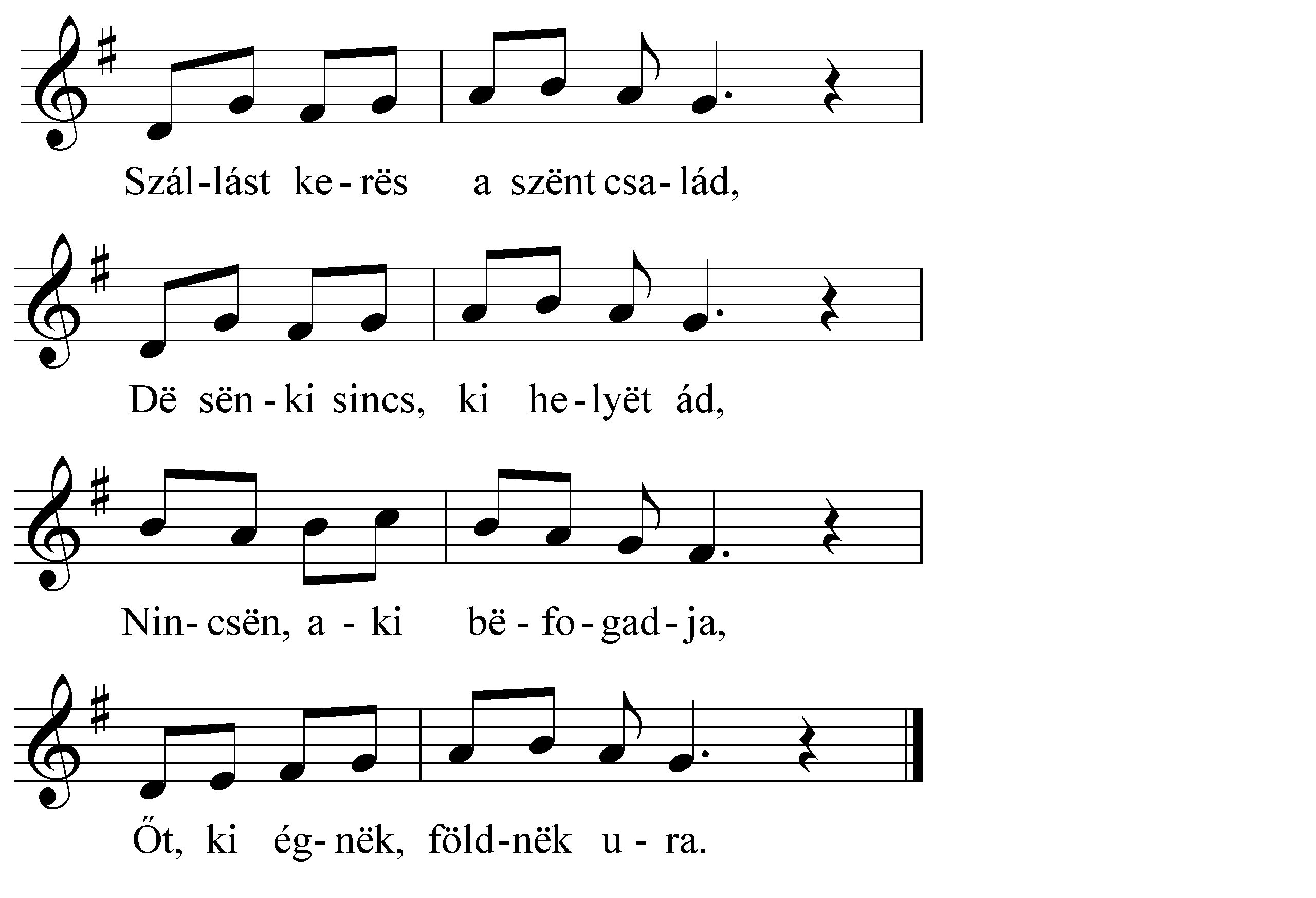 1. Szállást kerës a szënt család, Dë sënki sincs, ki...