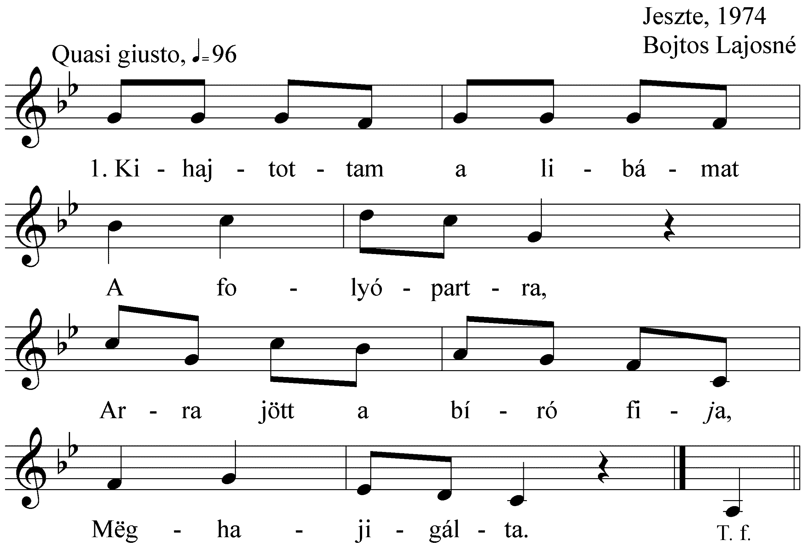 1. Kihajtottam a libámat, A folyópartra, Arra jött a bíró...