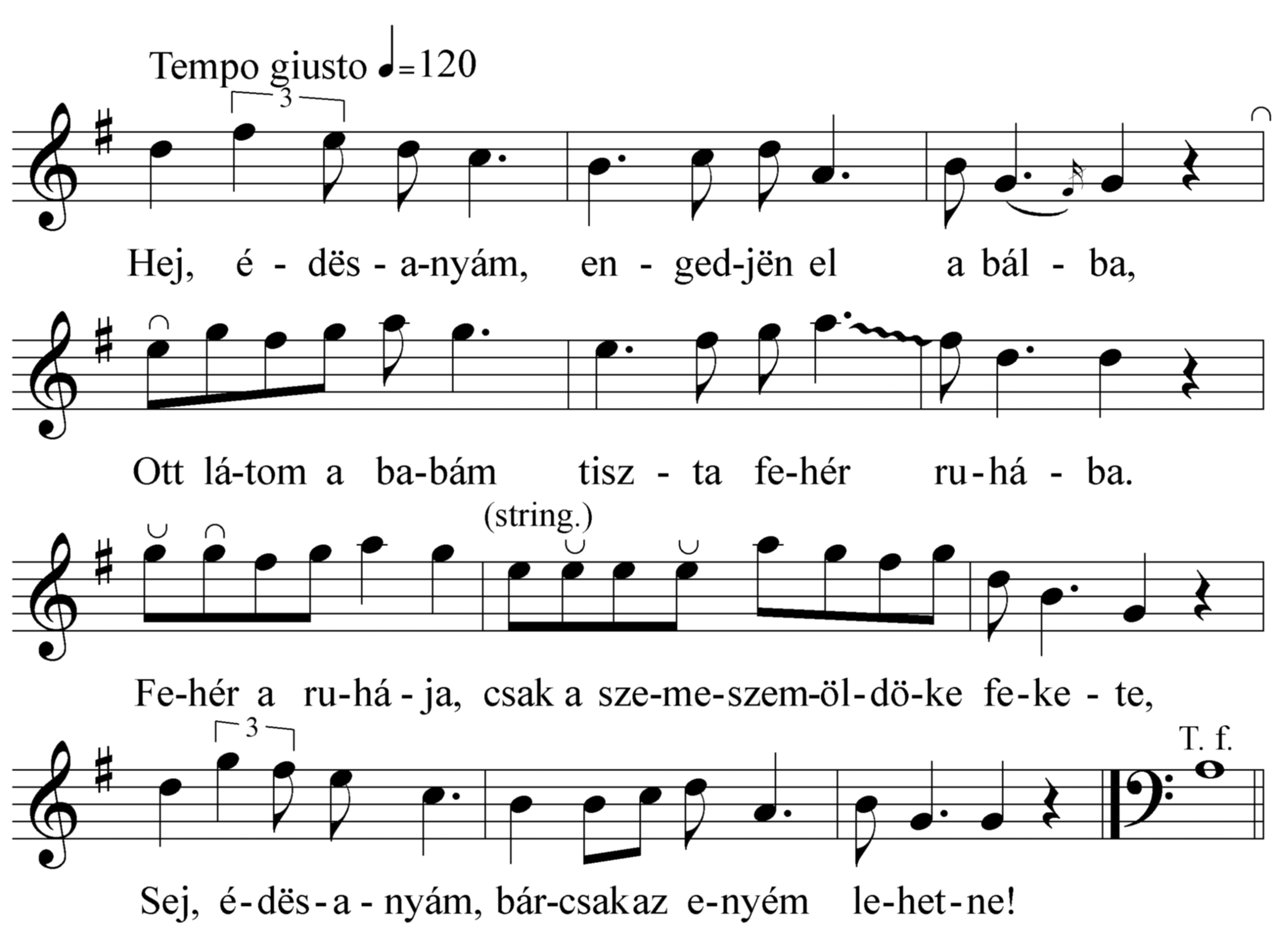 Hej, édësanyám engedjën el a bálba, Ott látom a babám tiszta fehér...