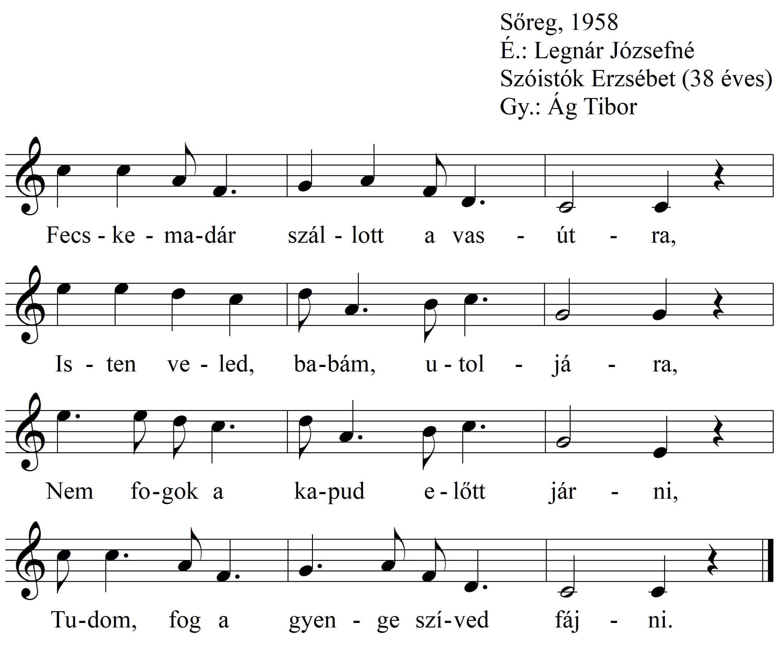 Fecskemadár szállott a vasútra (ének, alkalomhoz nem kötött dal, Felnőttek népdalai)