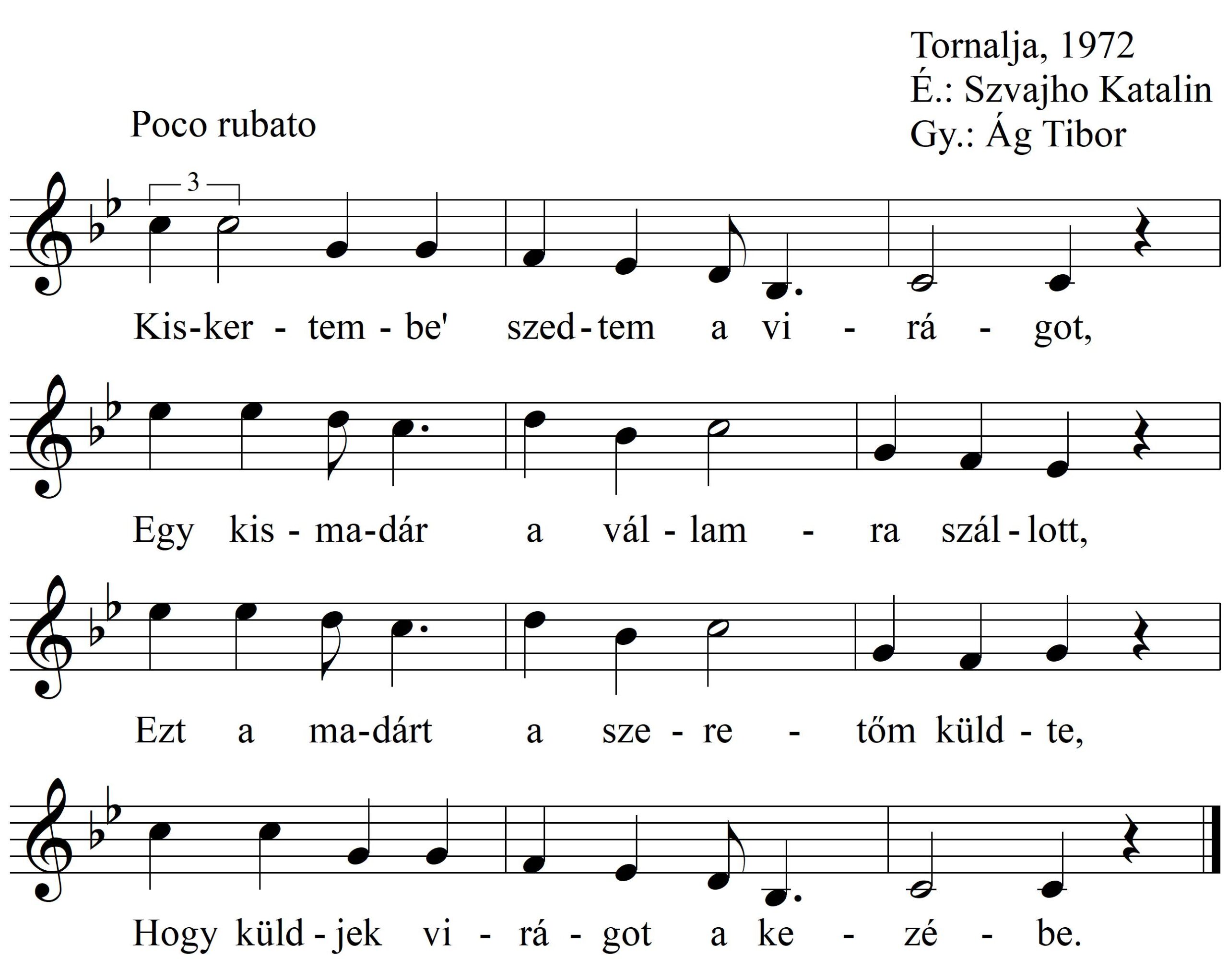 1. Kiskertembe´ szedtem a virágot, Egy kis madár a vállamra...