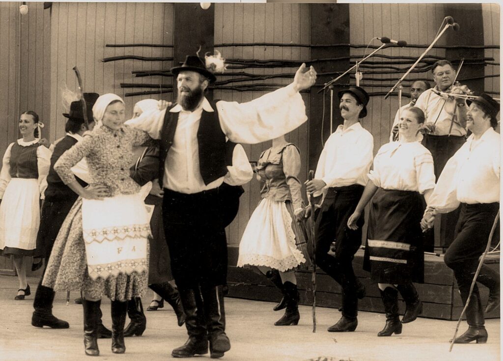 – Az első snitteknél / Nagy Ildi néni által vezetett szepsi Fehér Liliomszál egyik gyereke (ahol kislány táncol népviseletben a színpad háta mögött)